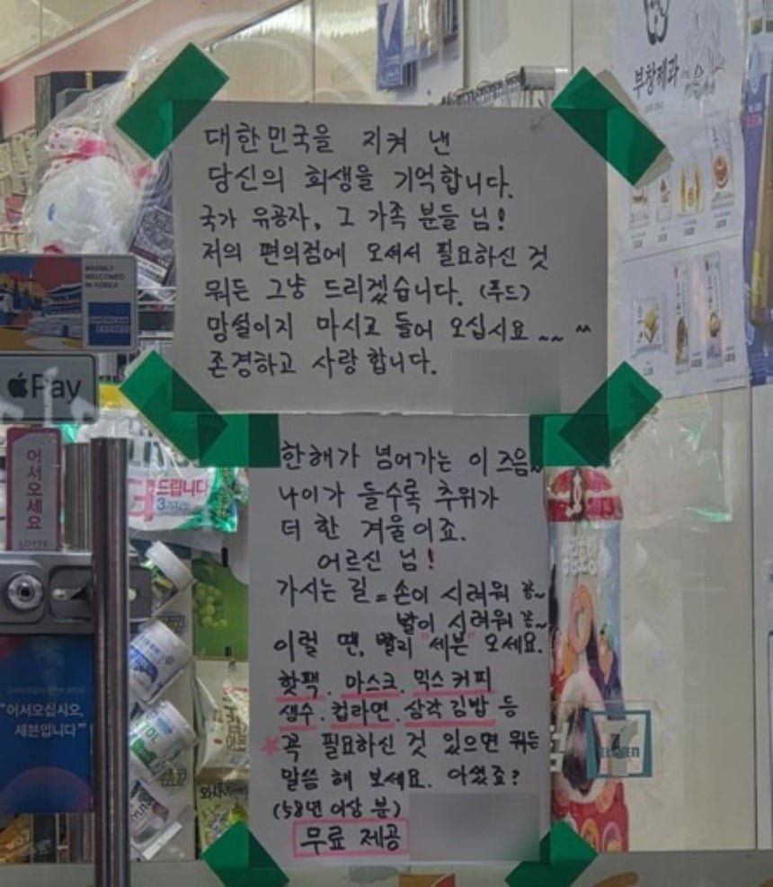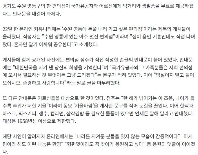 "필요하면 다 드리겠다" 수원 편의점 안내문 화제